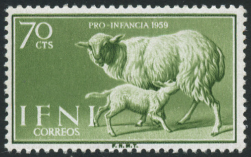 70c., vert-jaune Y&T N°129 Issued on 1959 Pour l'enfance indigène |