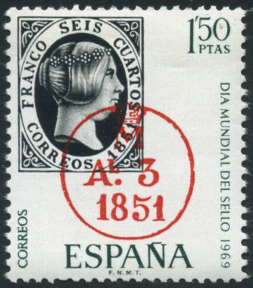 1.50p., noir, rouget vert foncé Y&T N°1573 Michel N°1809 Herausgegeben von 1969 T.P. de 1851 |