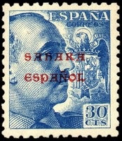 30c., bleu clair Y&T N°53 Issued on 1941 Timbre surchargé "Sahara Español" |