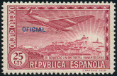 25c., lie-de-vin Y&T N°SEPA3 Herausgegeben von 1931 Timbre de Service pour la Poste Aérienne Surcharge "Oficial" |