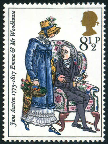8½p., noir, or et polychrome Y&T N°766 SG N°989 Emis en 1975 Bicentenaire de la naissance de Jane Austen, romancière (1775-1817) Dentelé 14½ |