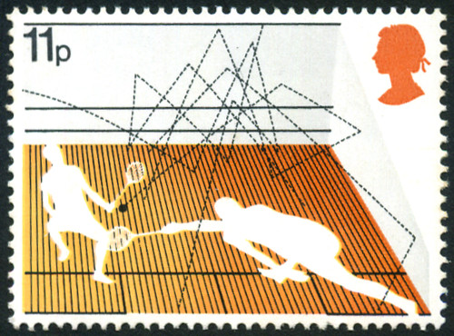 11p., noir, gris et bistre-orange Y&T N°819 SG N°1024 Emis en 1977 Sport de raquettes Dentelé 15x14½ |