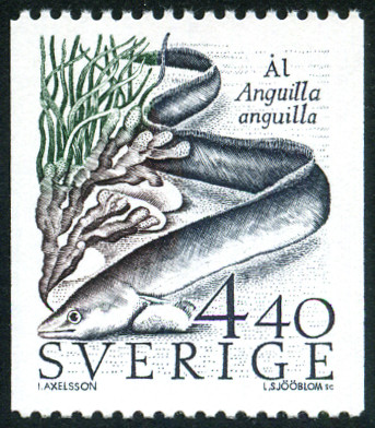 4,40Kr., bleu-noir, vert et brun-lilas Y&T N°1457 Emis en 1988 12¾ Taille-douce AnimauxPoissons |