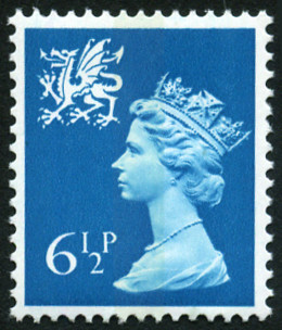 6½p., bleu-vert Y&T N°776 SG N°W22 Emis en 1976 Emission régionale Pays de Galles Timbre avec 2 bandes de phosphore Dentelé 15x14 |
