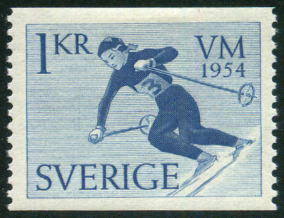 1Kr., bleu Y&T N°386 Emis en 1954 Dentelé 12¾ Taille-douce |