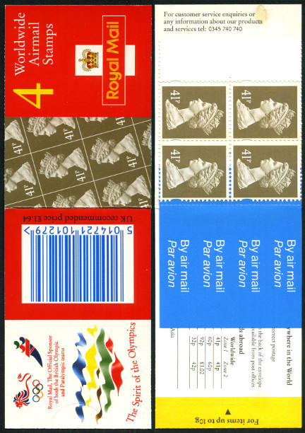 1,64£., gris-beige Y&T N°C1717-II Emis en 1993 Impression offset Carnet de 4 timbres + 4 vignettes "Par Avion" Couverture Jeux Olympiques |