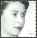 2nd., noir, blanc et argent Y&T N°2301 SG N°2253a WNS N°GB011.02 Herausgegeben von 2002 50ème anniversaire de l'accession au trône de sa Majesté la Reine Timbre avec une bande de phosphore bleuté au fluor Courrier lent correspondant à la valeur faciale de 19p. Dentelé 14½ |