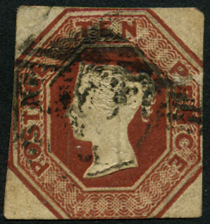 10p., brun-rouge Y&T N°6 Emis en 1848 Impression en relief Non dentelé |