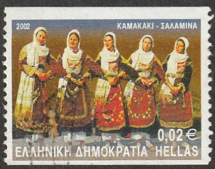 0,02¤, polychrome Y&T N°2068B Michel N°2083C Emis en 2002 Danses folkloriques Dentelé 13½ verticalement |