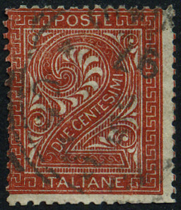 2c., brun-rouge Y&T N°13 Michel N°15 emitida el 1865 Dentelé 14 Filigrane couronne |