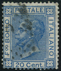 20c., bleu Y&T N°23 Michel N°26 Emis en 1867 Dentelé 14 Filigrane couronne |