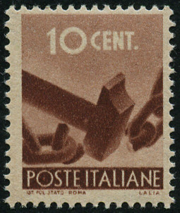 10c., brun carminé Y&T N°481 Michel N°682 emitida el 1945 Filigrane "Roue ailée" |