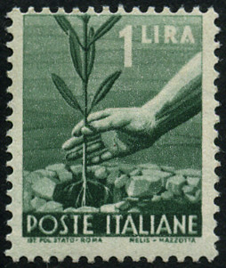 1l., vert-gris Y&T N°488 Michel N°689 emitida el 1945 Filigrane "Roue ailée" |