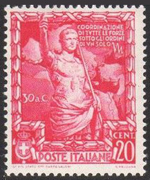 20c., rose carminé Y&T N°420 Michel N°605 Emis en 1938 Filigrane Couronne |