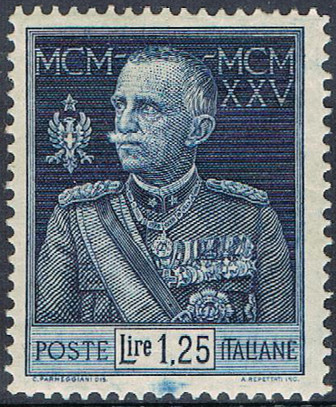 1.25l., bleu Y&T N°177 Michel N°188 Issued on 1925 Dentelé 13½ Jubilé du roi Victor-Emmanuel III |
