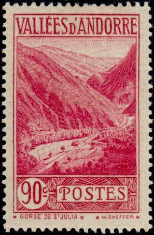 90c., rose-lilas Y&T N°38 Herausgegeben von 1932 Paysages de la Principauté |