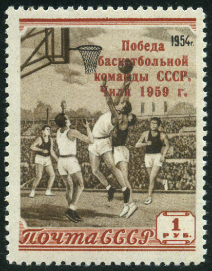 1r., brun-rouge et sépia Y&T N°2150 Emis en 1959 Victoire de l'équipe soviétique de basket-ball sur le Chili |