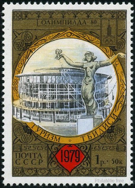 1r. + 50k., noir, or, ocre-brun, bistre et bleu pâle Y&T N°4636 Emis en 1979 |