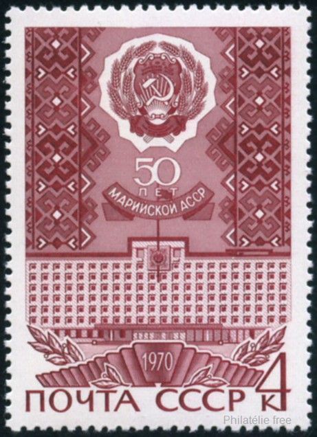 4k., rouge-brun Y&T N°3601 Issued on 1970 |