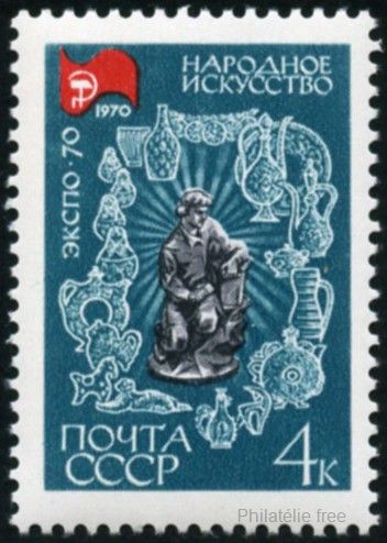 4k., vert-bleu, noir et rouge Y&T N°3590 Issued on 1970 |