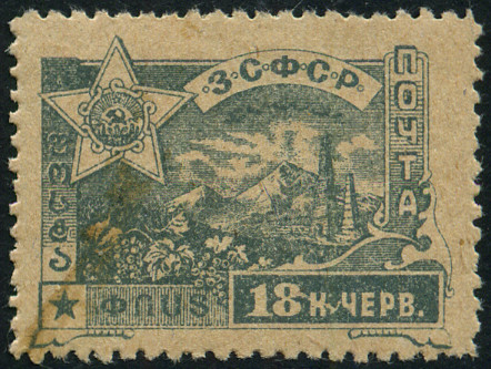 18k., gris-vert Y&T N°République du Caucase 23 Emis en 1923 Dentelé - Valeur en KOPEKS-OR |