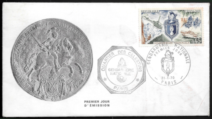 31/01/1970 - FDC n° 1622 "Gendarmerie Nationale" - quartier des Célestin à Paris, PARIS