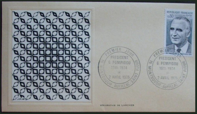 02/04/1975 - Anniversaire Président Georges POMPIDOU - sérigraphie LARCHER, MONTBOUDIF - AURILLAC - SAINT FLOUR